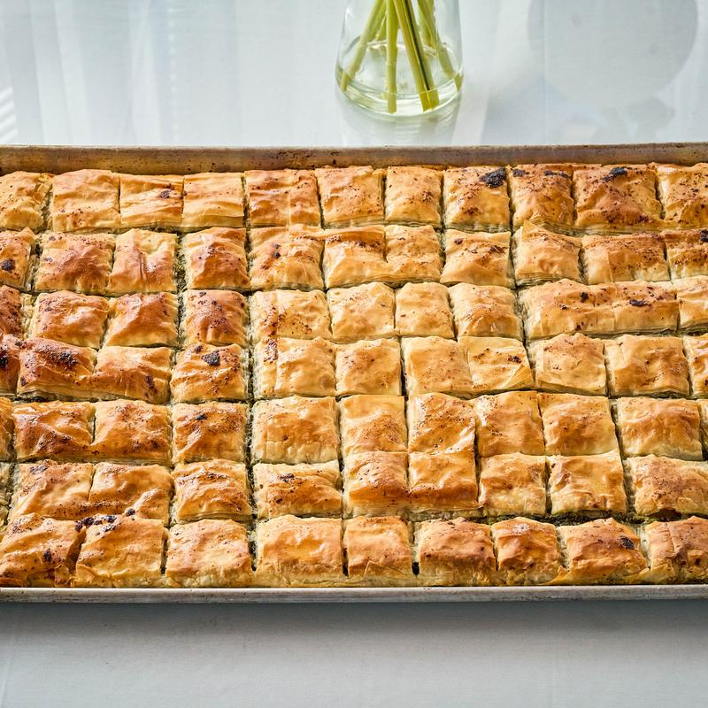 Classic Greek favorite layered with walnuts, phillo dough, and drenched in honey